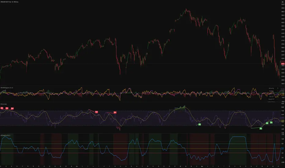 If the S&P 500 makes new highs but breadth is declining (fewer sectors above MA), that's a bearish divergence warning
