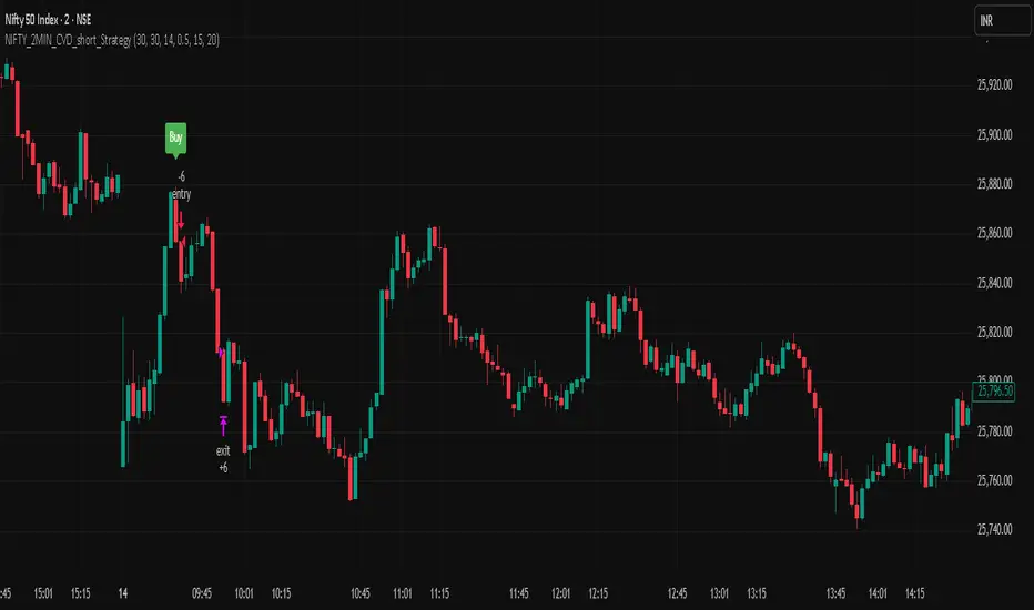 This strategy is an intraday system designed for the Nifty index on a 2-minute timeframe, focusing exclusively on identifying high-probability short (sell) entries. It utilizes a combination of rapid price action and Cumulative Volume Delta (CVD) to detect "Buying Absorption" at local peaks.
