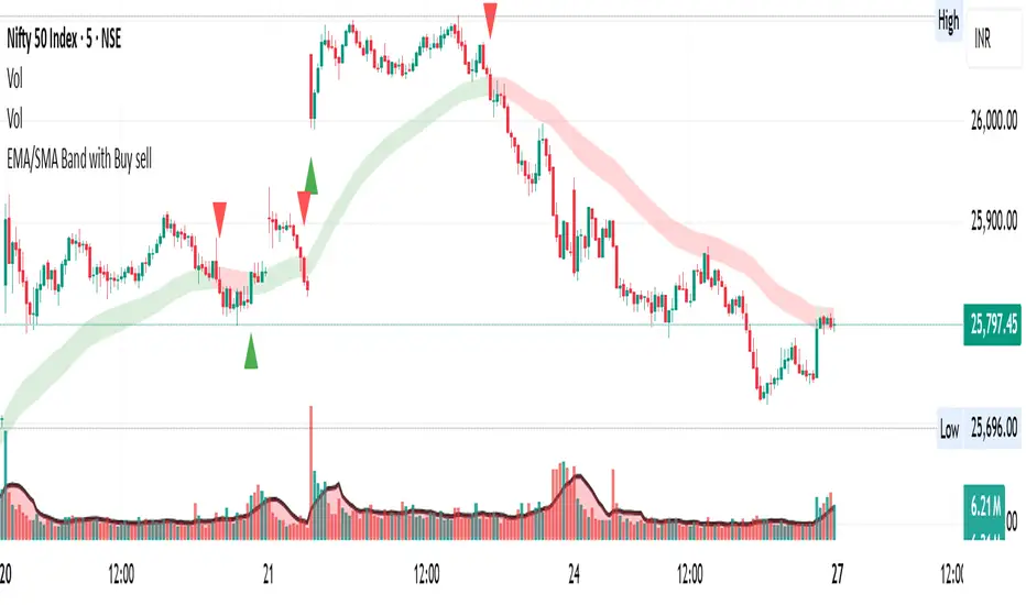 The EMA Band Indicator is a technical analysis tool that smooths market data using Exponential Moving Averages (EMA).