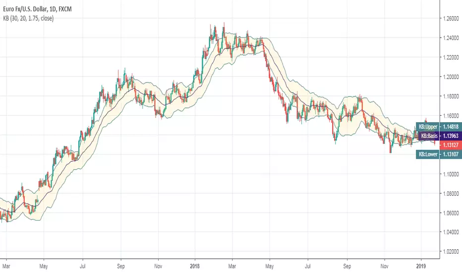 It uses the standard error of linear regression lines of the closing price to determine band width. This has the effect of measuring volatility around the current trend, rather than measuring volatility for changes in trend.