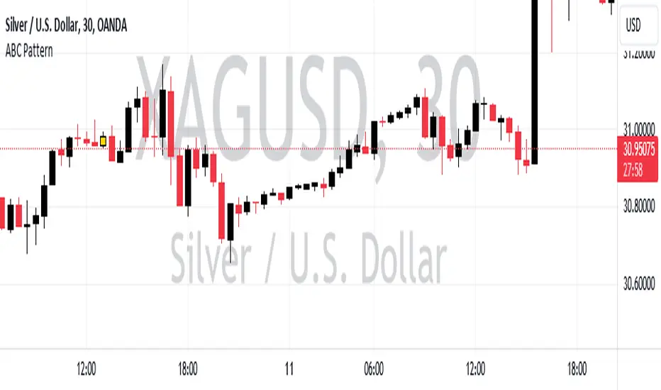 The indicator, named "ABC Pattern," is designed to identify specific bullish and bearish patterns on a price chart. Here's a simple explanation of what it does:
