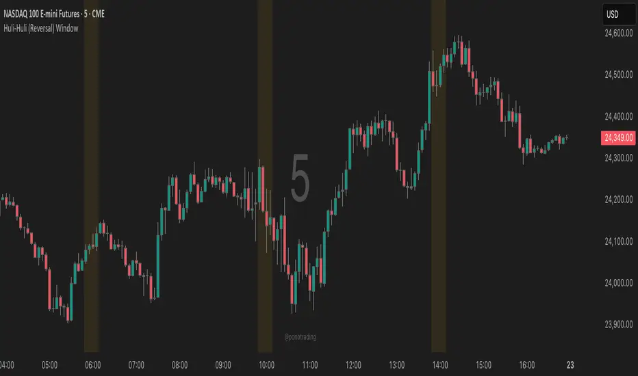 Huli (Hawaiian for "turn/flip") highlights specific time regions on your chart where price reversals and pivots are statistically more common during major trading sessions (Asian, London, NY).