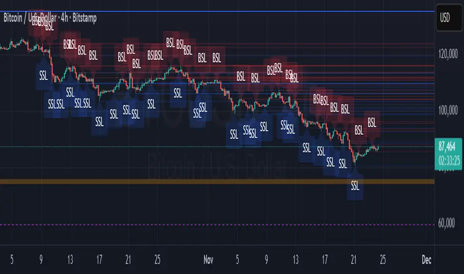 The Hydra Liquidity Matrix is a high-precision Smart Money indicator designed to reveal hidden liquidity zones, algorithmic targets, and displacement imbalances on any timeframe.