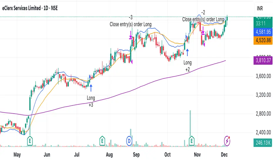 - Users can tailor the parameters to fit their own style (for example, faster EMAs for intraday trading, slower EMAs for positional trades).