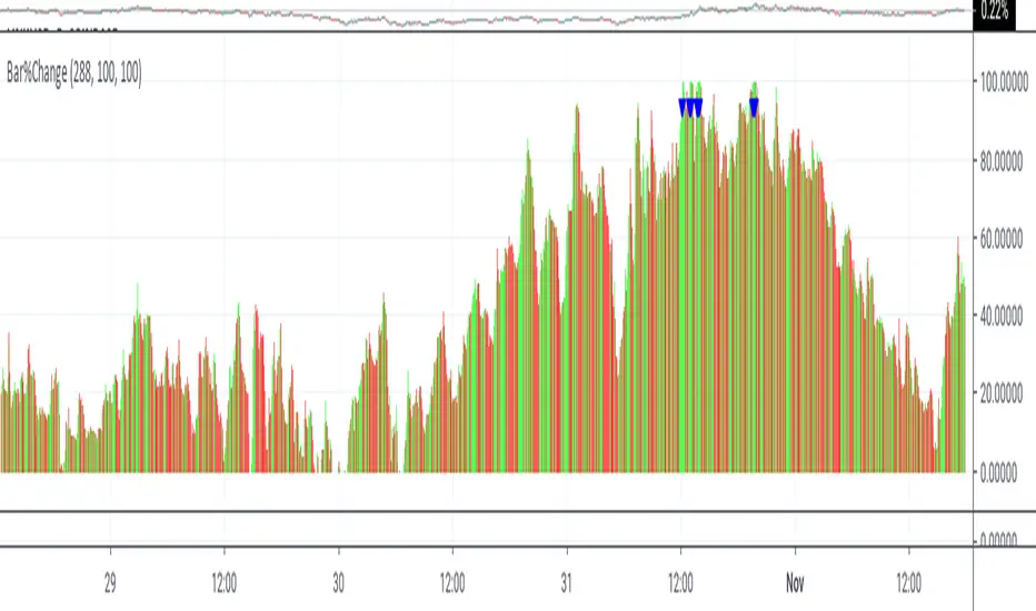 This is a visual study to hilight the change is candlestick by percentage. the percentages are calculated by the duration of the momentum. This study is not designed for automated trading.