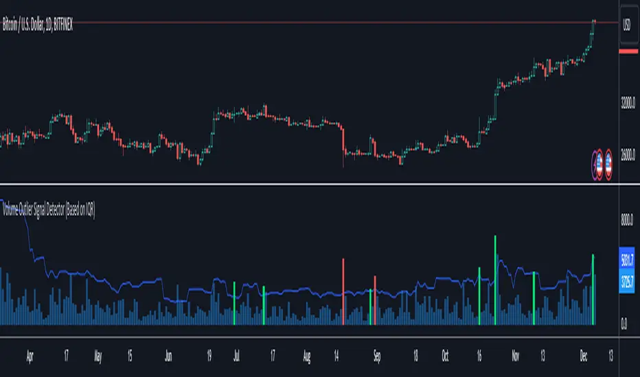 This indicator can detect outliers in trading volume using the 1.5 IQR rule or the outlier formula.