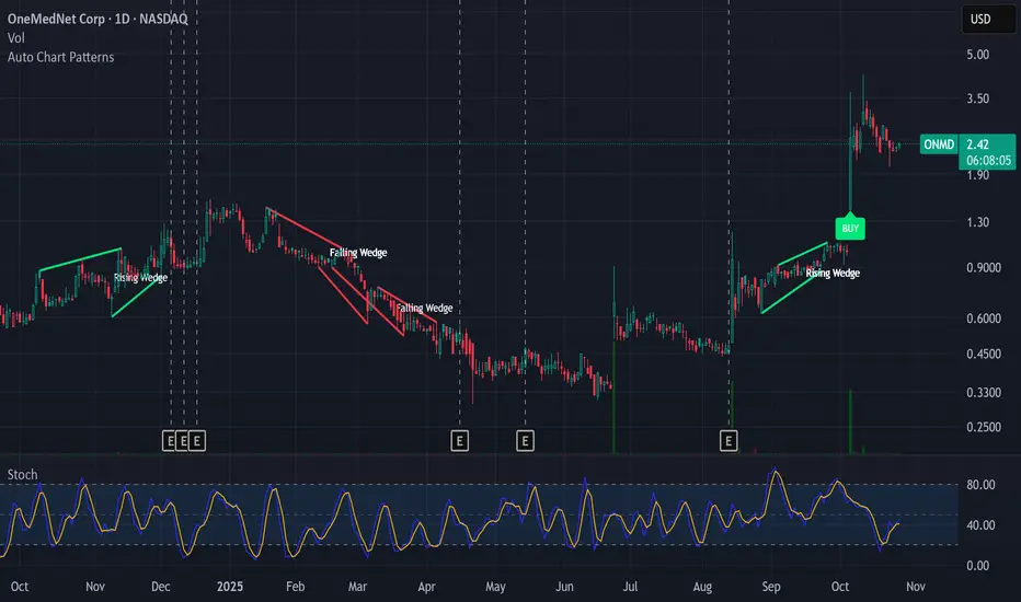 Auto Chart Patterns automatically scans the chart for major technical patterns and marks them directly on price action. It detects:
