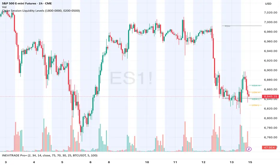 This indicator automatically plots key ICT-style liquidity levels for intraday trading on ES, NQ, and other futures.