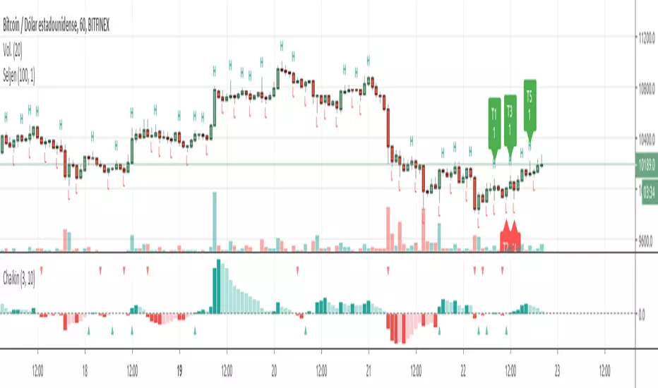 This indicator shows an hystogram with the Chainkin Oscilator values, with color changes in function of the direction (up/down) . Also show the 0 crossovers, up and down.
