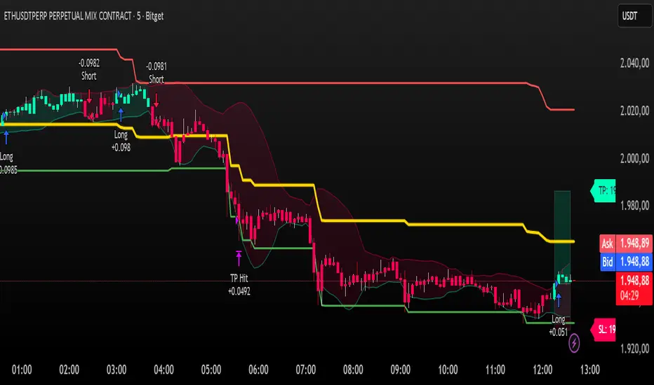 Dynamic Risk-Reward Envelopes: Upon entry, the script automatically projects your Take Profit (TP) and Stop Loss (SL) zones as interactive boxes. These boxes expand in real-time as the trade progresses, giving you a clear visual of your "safe" and "danger" zones.