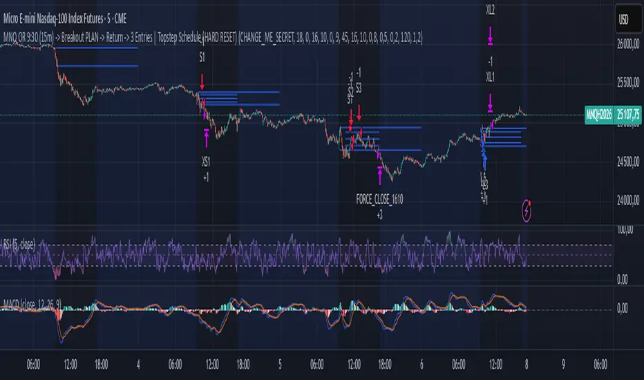 The strategy observes the first Nasdaq impulse at the opening, waits for a clean pullback in the Opening Range, then intelligently scales up to 3 micros, only on the same day, with perfectly synchronized alerts.