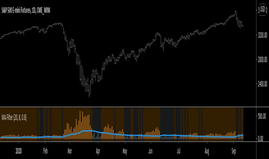 MA Filter is a volatility indicator inspired by the Braid Filter and WAE indicators.