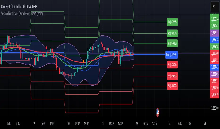 업데이트됨 Session Pivots + EMA20/50 + Bollinger Bands