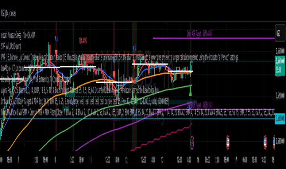 A multi-MA toolkit that plots up to six moving averages and alerts on crosses. Each line can be EMA or SMA, fully configurable, and you can add three independent cross sets with optional filters.