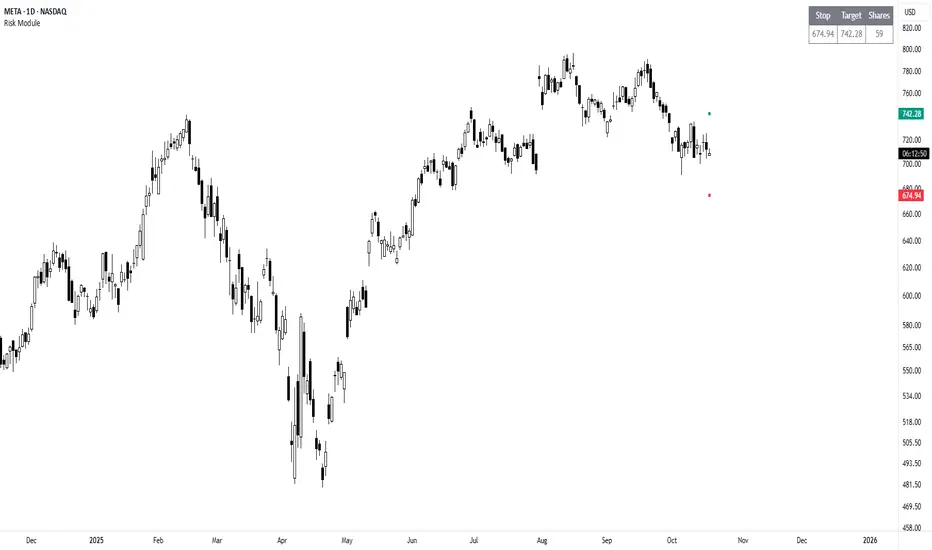 This indicator provides a visual reference for position sizing and approximate stop and target placement. It supports trade planning by calculating equalized risk per trade and maintaining consistent exposure across different markets.