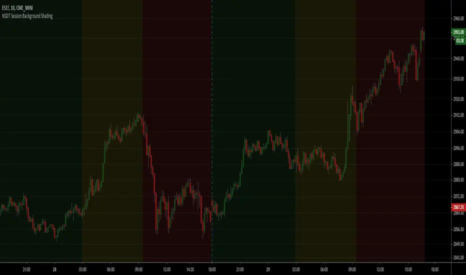 A simple script to add background colors to specific timeframes. Great for trading futures so you can separate sessions for easier viewing. Use for stocks to separate pre, open, and post market times.