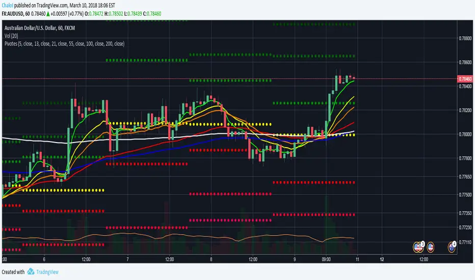 Para las personas que quieran utilizar los puntos pivotes y varias medias móviles exponenciales en un solo indicador // For people who want to use Pivot Points and different Exponential Moving Averages in One indicator