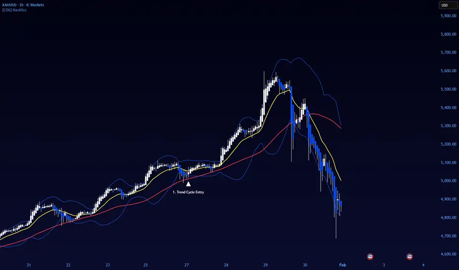 Watch for First Entry Labels: The "1. Trend Cycle Entry" label highlights the highest-probability signals occurring right after trend changes.