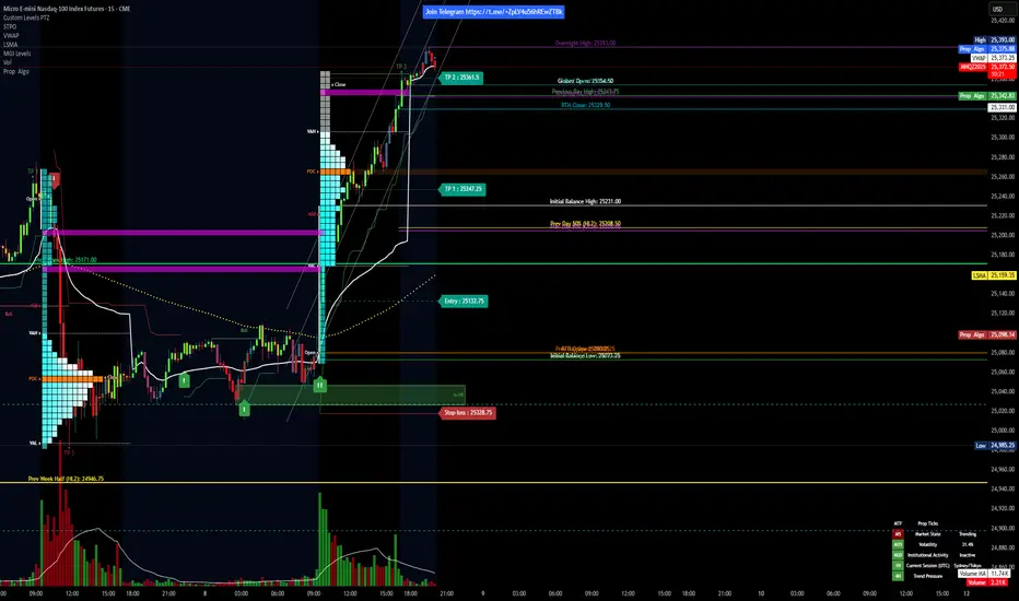 Prop Algo is a multi-tool trading assistant that blends trend following, contrarian timing, and Smart Money Concepts (SMC). It plots clean buy/sell labels, paints candles by momentum state, maps TP/SL levels automatically, shows a compact **Smart Panel** (dashboard), and draws **auto-trendlines**, **trend clouds**, and **institutional zones** (OB/BB/MB). It’s built to help discretionary traders make faster, rules-based decisions without drowning in settings.