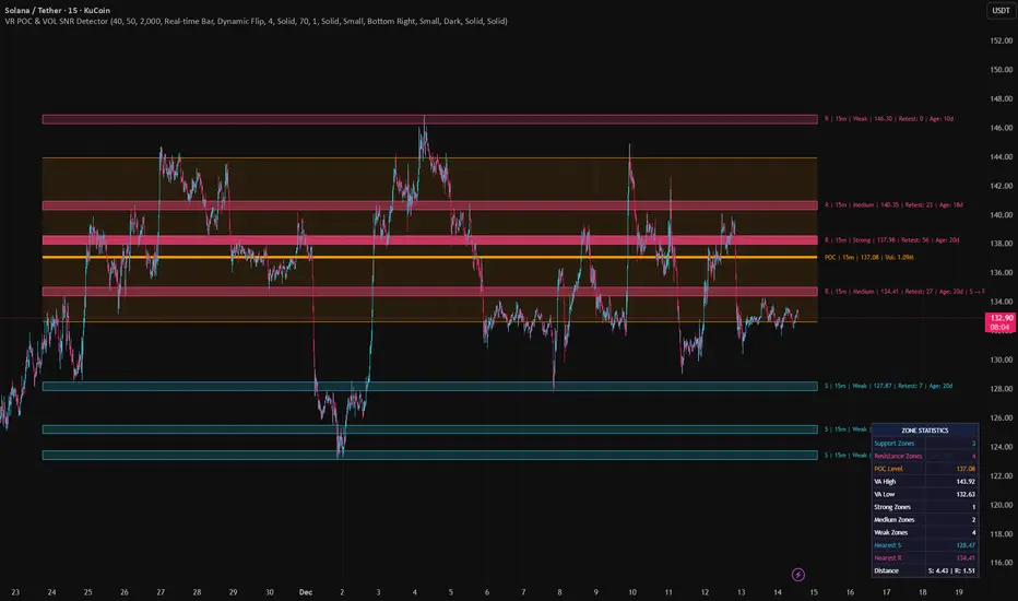 Visible Range POC & Volume SNR Detector PRO is a professional-grade volume-based market structure tool designed to identify institutional Support & Resistance zones, Point of Control (POC), and Value Areas directly from the visible chart range.