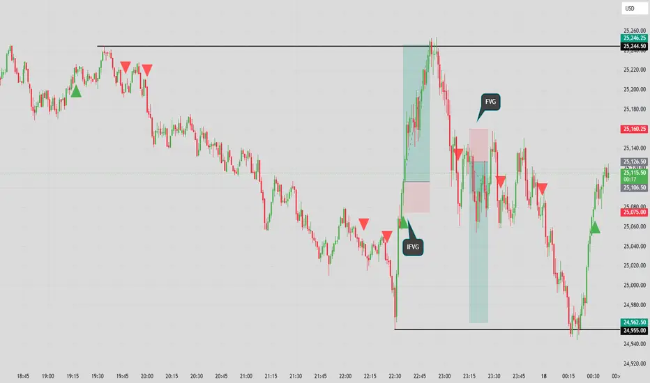 During the silver bullet window, it clearly highlights when and in which direction to look for FVGs. When a signal appears, nearby FVGs or iFVGs often provide excellent entry opportunities. Feel free to share your thoughts and experiences.