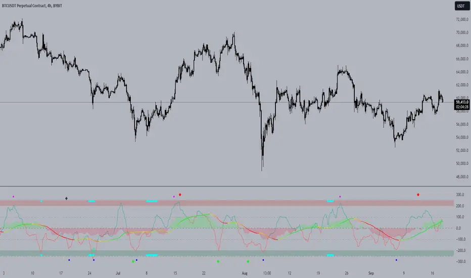 The script incorporates a dynamic overbought/oversold detection zone based on the enhanced CCI. It accounts for market volatility, allowing it to adjust its thresholds (such as the 200 level) more effectively in different market environments. This makes the enhanced CCI better suited for varying market conditions compared to the fixed thresholds of the original CCI.