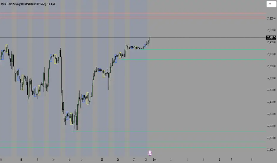 A multi-timeframe session analysis tool designed for forex and futures traders operating on NY time. This indicator visualizes major trading sessions with automatic high/low range boxes while simultaneously tracking 4-hour swing levels, giving you a complete picture of institutional trading activity and key price levels.