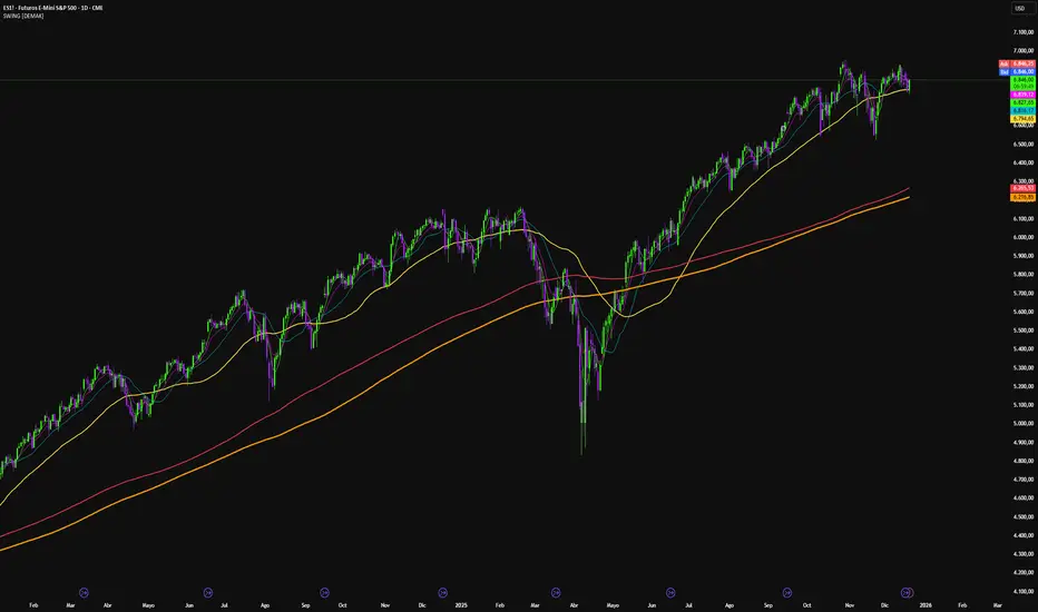 SWING [DEMAK] is a chart-based indicator designed to provide a clear swing and trend structure by combining multiple moving averages with session-based VWAP reference lines.