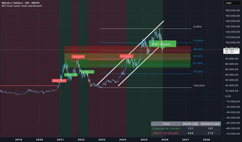 This indicator is a macro-analysis tool designed to visualize the true duration of Bitcoin’s market cycles. Unlike standard oscillators that focus on short-term price action, the Macro Cycle Tracker filters out the noise to answer two fundamental questions:
