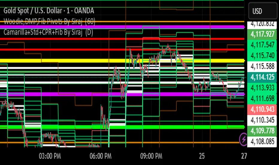 Woodie + Delta Method(DM) + Fibonacci Pivots — MTF (All-in-One) by Siraj is a next-generation multi-pivot confluence tool that merges three of the most respected institutional pivot systems into one clean, customizable indicator.