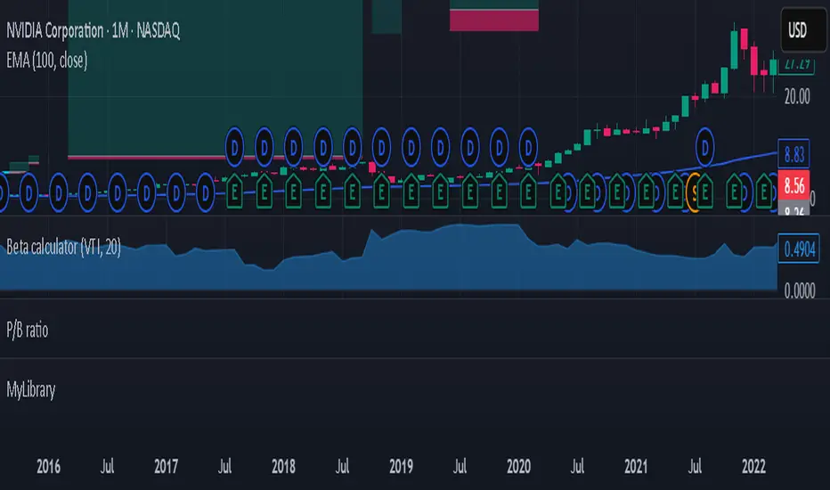 Calculates the market beta for the stock that is on your screen. You may change the parameters by changing the symbol you are using as benchmark to calculate market beta in the settings. This will affect the market beta you get. VTI is used since it has a theoretical market beta of 1.