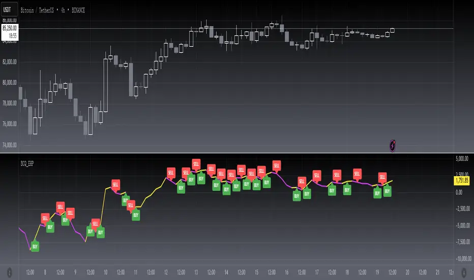 Provides clear buy ('BUY') and sell ('SELL') labels on the chart 🏷️