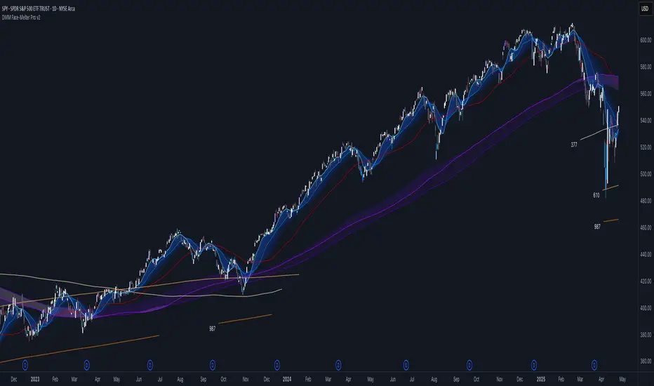 - Cool 9: A fast-reacting line with a smooth visual gradient stretching to the Fibonacci 34. The gradient visually communicates momentum decay and near-term exhaustion.