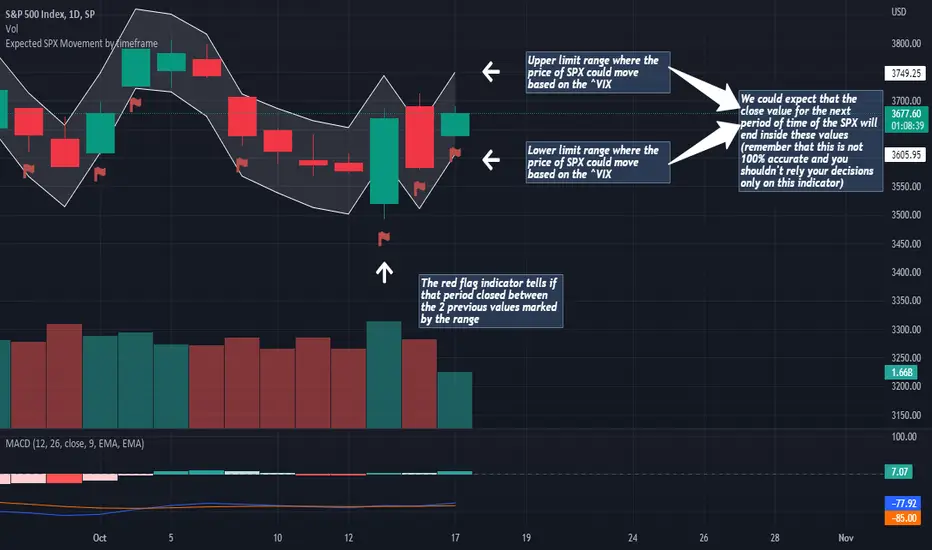 - If you selected the Daily timeframe it will calculate the expected move of SPX in the next Day by dividing the current VIX Value by the squared root of 252