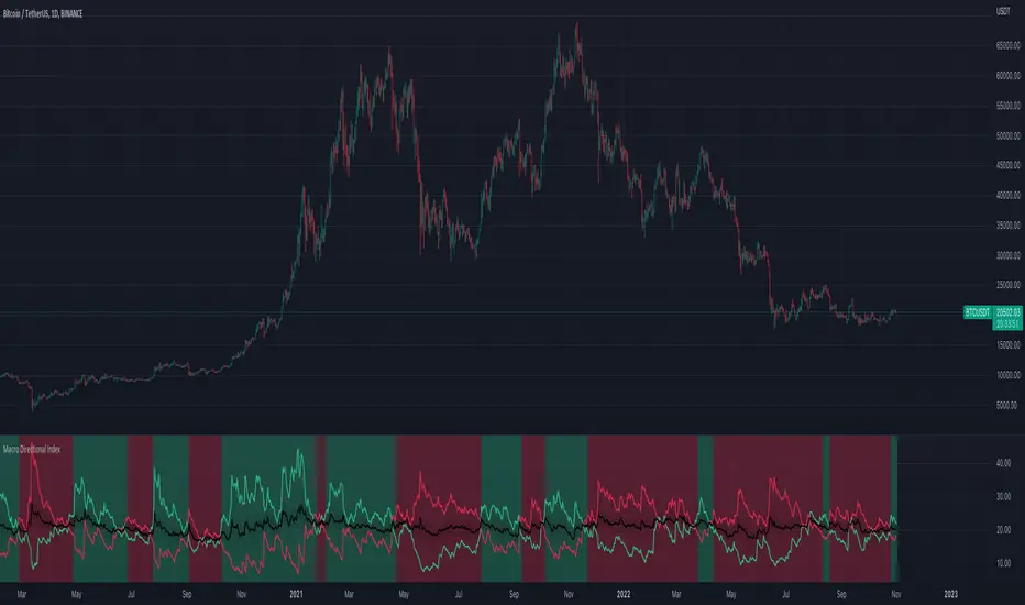 Between the DI+ and DI- is a black centerline. Offset from this centerline is a channel that is used to filter out false crosses of the DI+ and DI-. Sometimes, the DI+ and DI- lines will come together in this channel and cross momentarily before resuming the direction prior to the cross. When this happens, you don't want to flip your bias too soon. The wider the channel, the later the indicator will signal a DI reversal. A narrower channel will call it sooner but risks being more choppy and indicating a false cross."