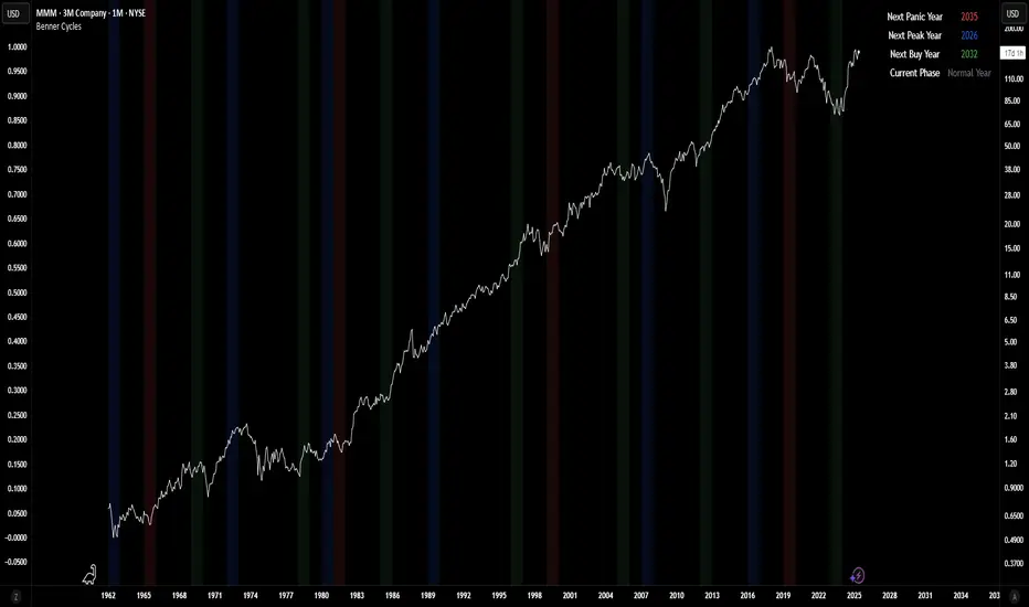 Benner's work is legendary among financial historians and cycle theorists. His original charts, dating back to the 1800s, remarkably anticipated economic booms, busts, and recoveries by following repeating year intervals. This modern adaptation brings that ancient rhythm into your TradingView workspace.