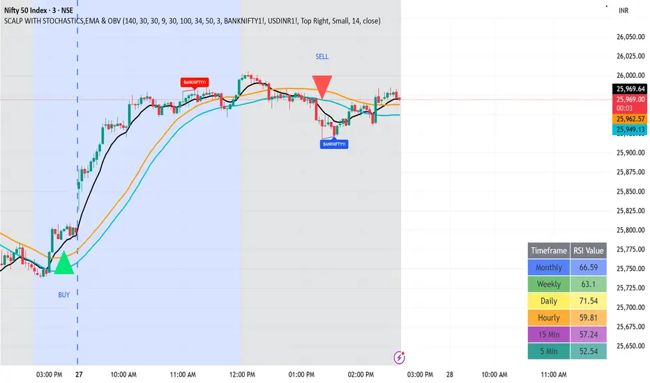 This indicator combines Stochastic momentum, EMA/SMA trend filters, and OBV volume confirmation to generate high-quality first Buy/Sell signals after confirmed reversals.