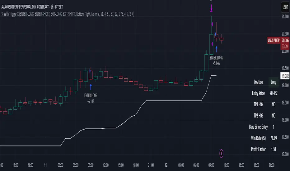 Stealth Trigger X is a precision-engineered, non-repainting strategy designed for traders who rely on high-conviction breakouts and trend confirmation. Rather than relying on lagging or oversimplified signals, this strategy fuses divergence logic, volatility detection, volume filtering, and slope-based trend validation into one clean system — making it both responsive and reliable.