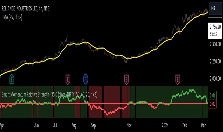 The Smart Momentum Relative Strength combines several advanced technical analysis tools into one comprehensive Pine Script indicator designed to provide a nuanced view of market strength and trends. This script integrates Relative Strength (RS), Commodity Channel Index (CCI), and additional trend confirmation mechanisms to deliver actionable insights for traders.