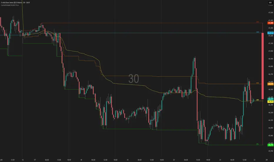 • Live anchored VWAP updated throughout the week as a dynamic anchor