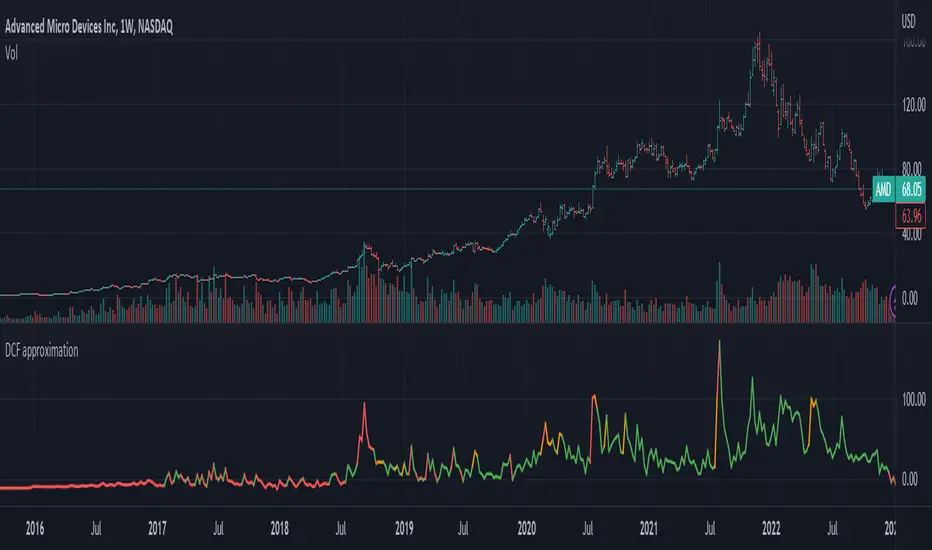 The indicator for calculating and visualizing the Discounted Cash Flow (DCF) for a selected stock.