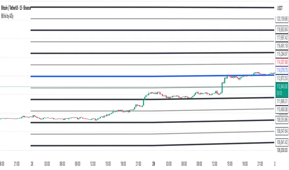 Bollinger Bands indicator designed to display six customizable levels of standard deviation around a chosen moving average. The purpose of this indicator is to help traders identify dynamic price levels where the market might find support, resistance, or volatility extremes.