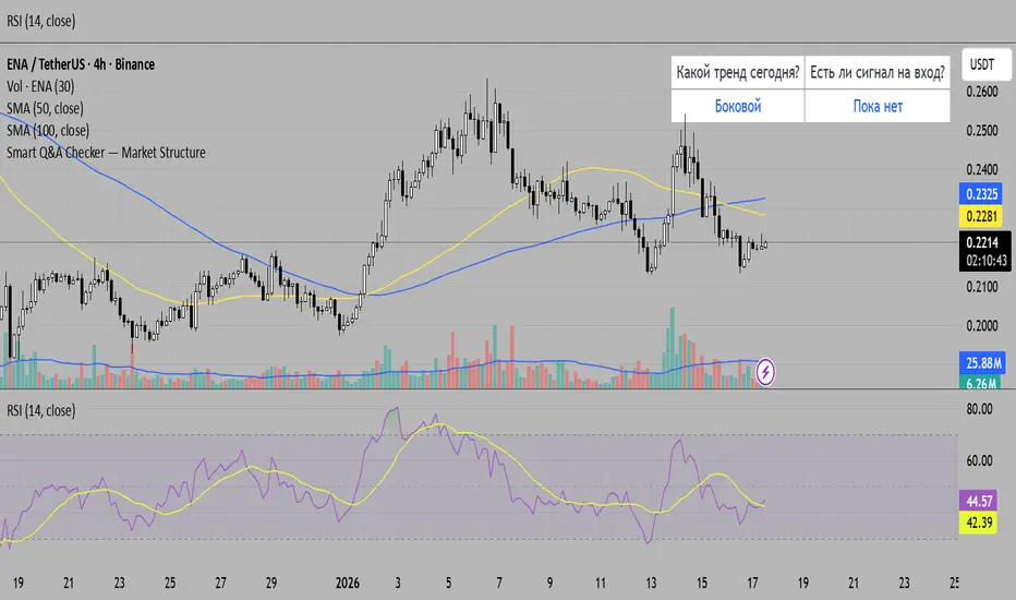 This Pine Script v6 indicator automatically analyzes market structure and displays the results in a clear question‑and‑answer format on the chart