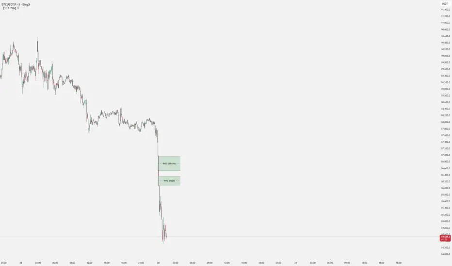 This indicator automatically detects and displays Fair Value Gaps (FVG) based on ICT (Inner Circle Trader) methodology.