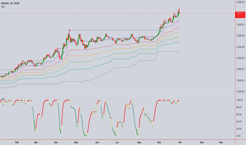 The sero Indicator is a custom oscillator designed to identify market momentum shifts between bullish (pump) and bearish (dump) phases. It works by normalizing price action using a range calculation, then smoothing it with an EMA. The resulting line (sero value) oscillates on a scale around 0 to 100, giving clear visual cues about momentum strength.