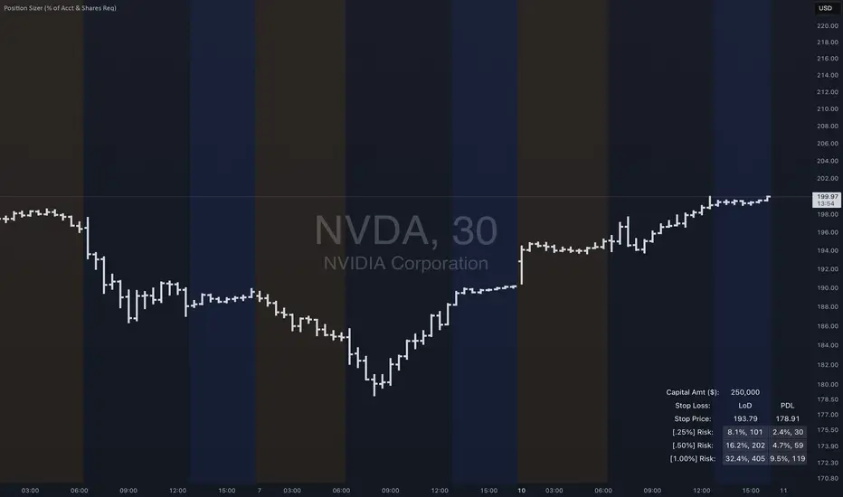 업데이트됨 Position Sizer (% of Acct & Shares Req)