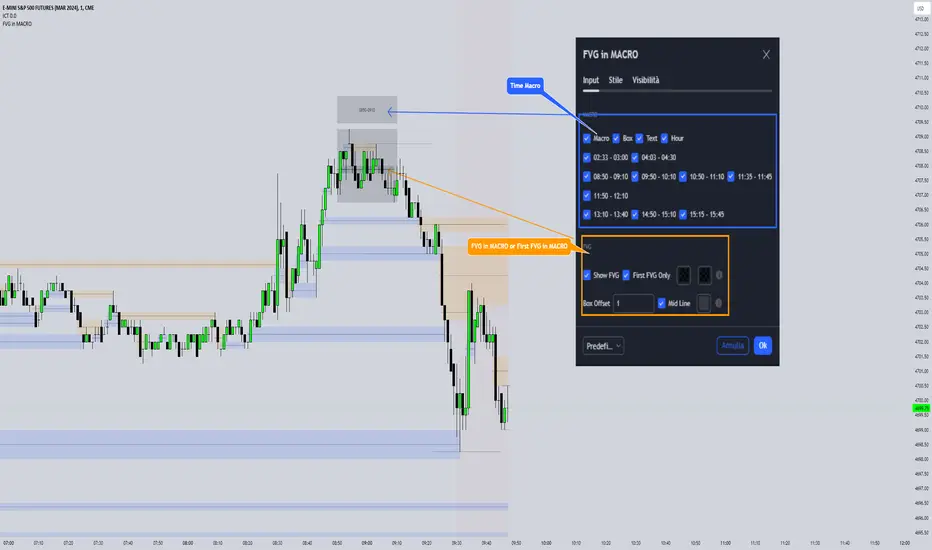 Guided by ICT tutoring, I created this versatile indicator to scan the FVG in MACRO time.
