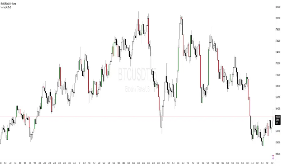 From Al Brooks' "Trading Price Action Trends," this indicator colors strong trend bars. Bull trend bars (green body ≥50%, close ≥60% up range, larger than 1.5x average) highlight buyer control, while bear trend bars (red body ≥50%, close ≤40% down range) show seller dominance. Use to identify trend resumption or climaxes. Philosophy: Trends persist until tested—focus on high-probability entries after pullbacks, avoiding barbwire noise.