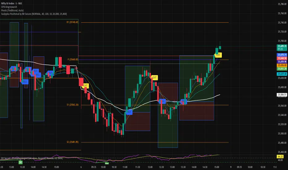 Bit Secure – Index Structure Engine is a structure-first intraday indicator designed for index traders (NIFTY / BANKNIFTY / FINNIFTY) who want clarity, discipline, and noise-free execution.