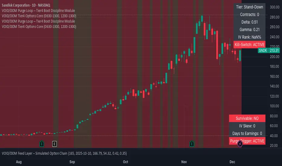 VOID/DOM Tier4 Options Core is an institutional-grade microstructure engine designed to map premium flow, volatility skew, contract drift, and IV-pressure zones during the highest-value trading windows of the day.